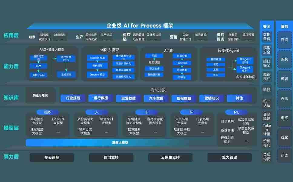 j9国际站备用问学智车解决方案是一套基于AI技术的汽车行业智能化系统,,覆盖从底层算力到顶层AI应用的全栈方案。。。。方案由算力层、、模型层和应用层组成:算力层,,,方案支持多种一体机配置,,,具备云端灵活部署、、多云适配以及动态优化计算资源的能力;模型层,,j9国际站备用问学平台版提供了企业级AI应用一站式构建与管理平台,,支持基于后训练强化技术的汽车企业专属模型的训练、、、、评测和运营;应用层,,,j9国际站备用问学DeepSeek版提供包括超级员工、、、、智能招采、、智能营销、、、智能客服、、、、AI for BI等一系列解决方案,,可助力汽车行业实现数字化转型,,,,让管理更智能、、响应更敏捷。。。
